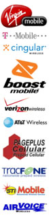 WE CARRY ALL THE MAJOR (AND MINOR) BRANDS: Virgin Mobile, T-mobile, AT&T Wireless, Cingular, BOOST, Verizon Wireless, Pageplus Cellular, TracFONE, Alltel, Air Voice, Buzz, Beyond Wireless, Call Plus, Liberty Wireless, Net 10, Locus, Movida, O Mobile, Omni Prepaid, Oxygen Wireless, STI Mobile, Tuyo Mobile, and Xtreme Power.